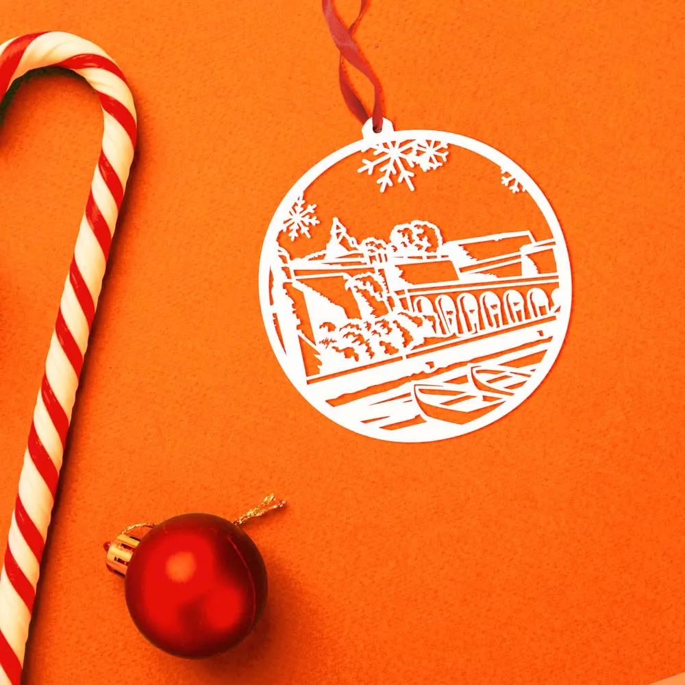 Apportez la magie de Blaye à votre sapin avec cette boule de Noël en acier laqué blanc mettant à l’honneur le charme authentique de cette ville emblématique et de son estuaire, parfaite pour sublimer votre décoration.