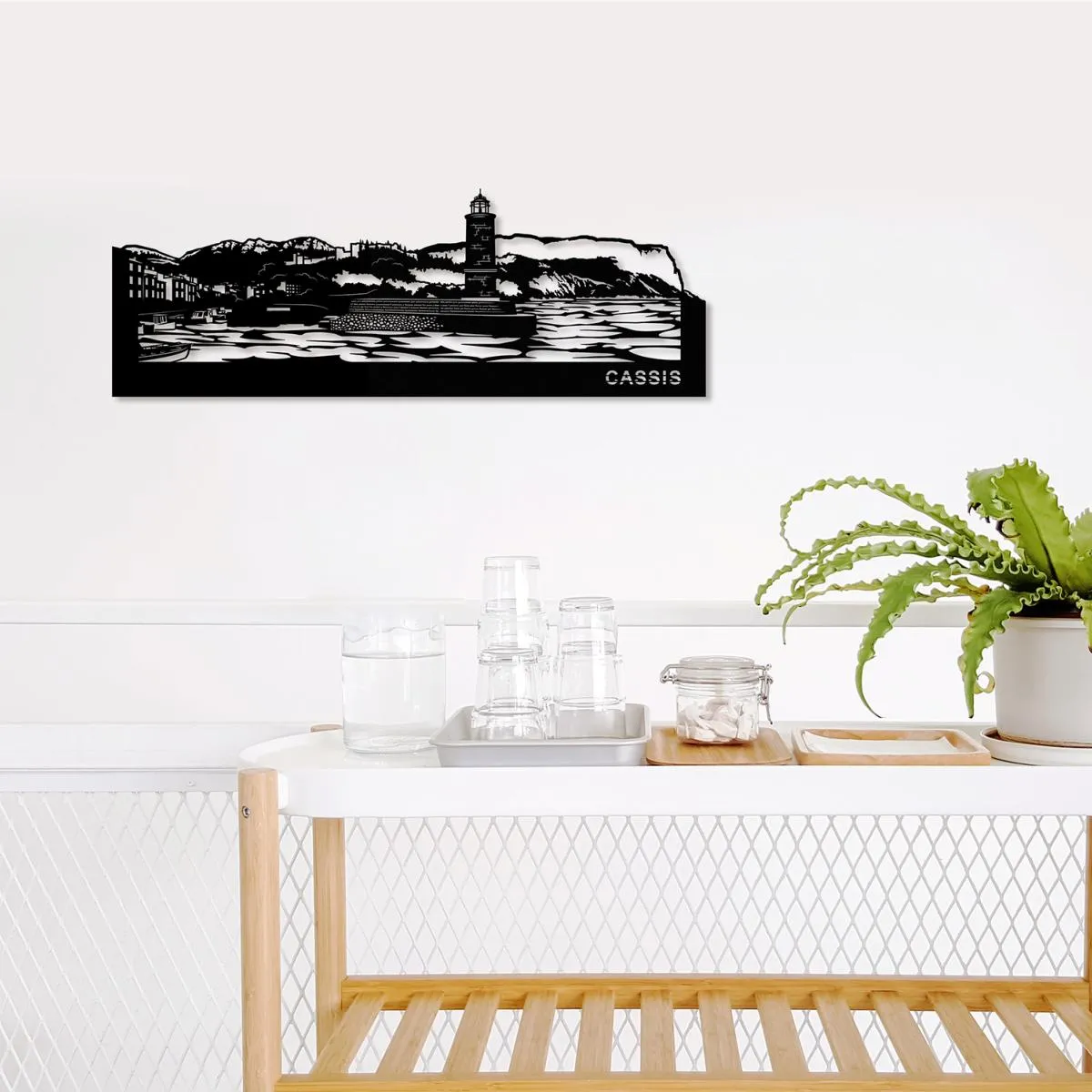 Cette skyline de Cassis en métal découpé ajoutera à votre décoration intérieure une touche moderne et élégante.