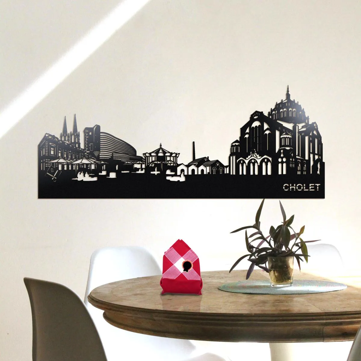 Cette skyline de Cholet centre en métal découpé ajoutera à votre décoration intérieure une touche moderne et élégante.