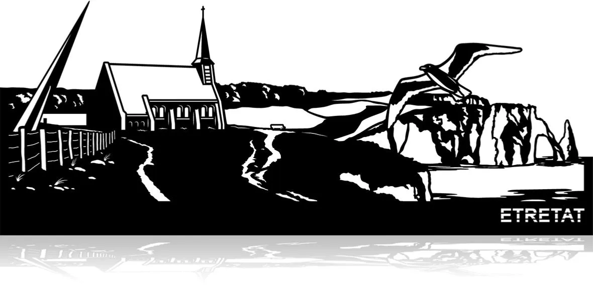 Cette skyline de Étretat en métal découpé ajoutera à votre décoration intérieure une touche moderne et élégante.