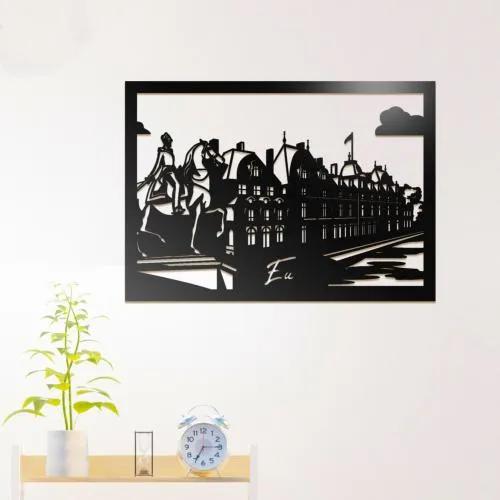 Ce tableau mural en métal découpé représentant la ville d’Eu va faire sensation dans votre intérieur. Comblez vos envies de chic et de voyage sans plus tarder !