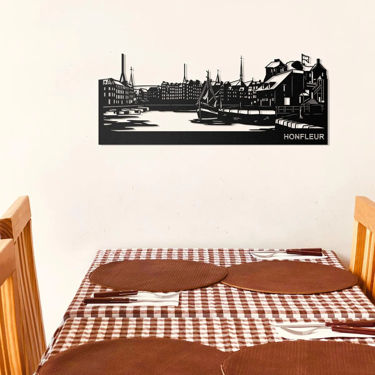 Cette skyline d’Honfleur en métal découpé ajoutera à votre décoration intérieure une touche moderne et élégante.