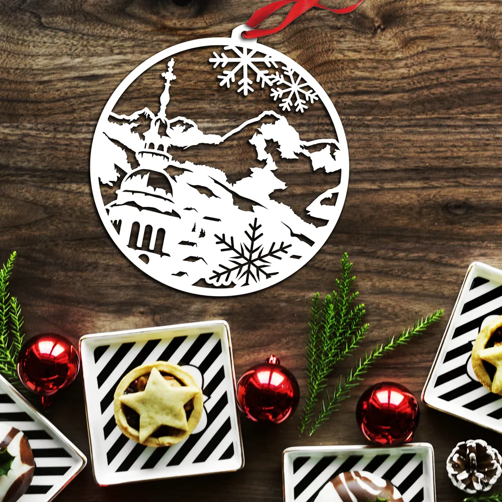 Apportez la magie du Grand-Bornand à votre sapin avec cette boule de Noël en acier laqué blanc mettant à l’honneur le charme authentique de ce village savoyard et de ses paysages de montagne, parfaite pour sublimer votre décoration.