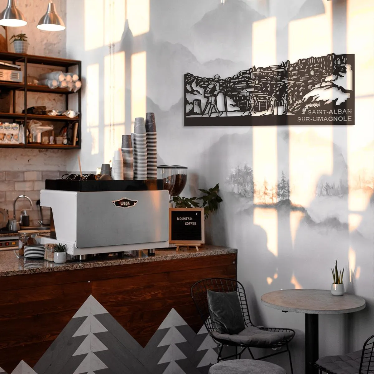 Cette skyline de Saint-Alban-sur-Limagnole en métal découpé ajoutera à votre décoration intérieure une touche moderne et élégante.