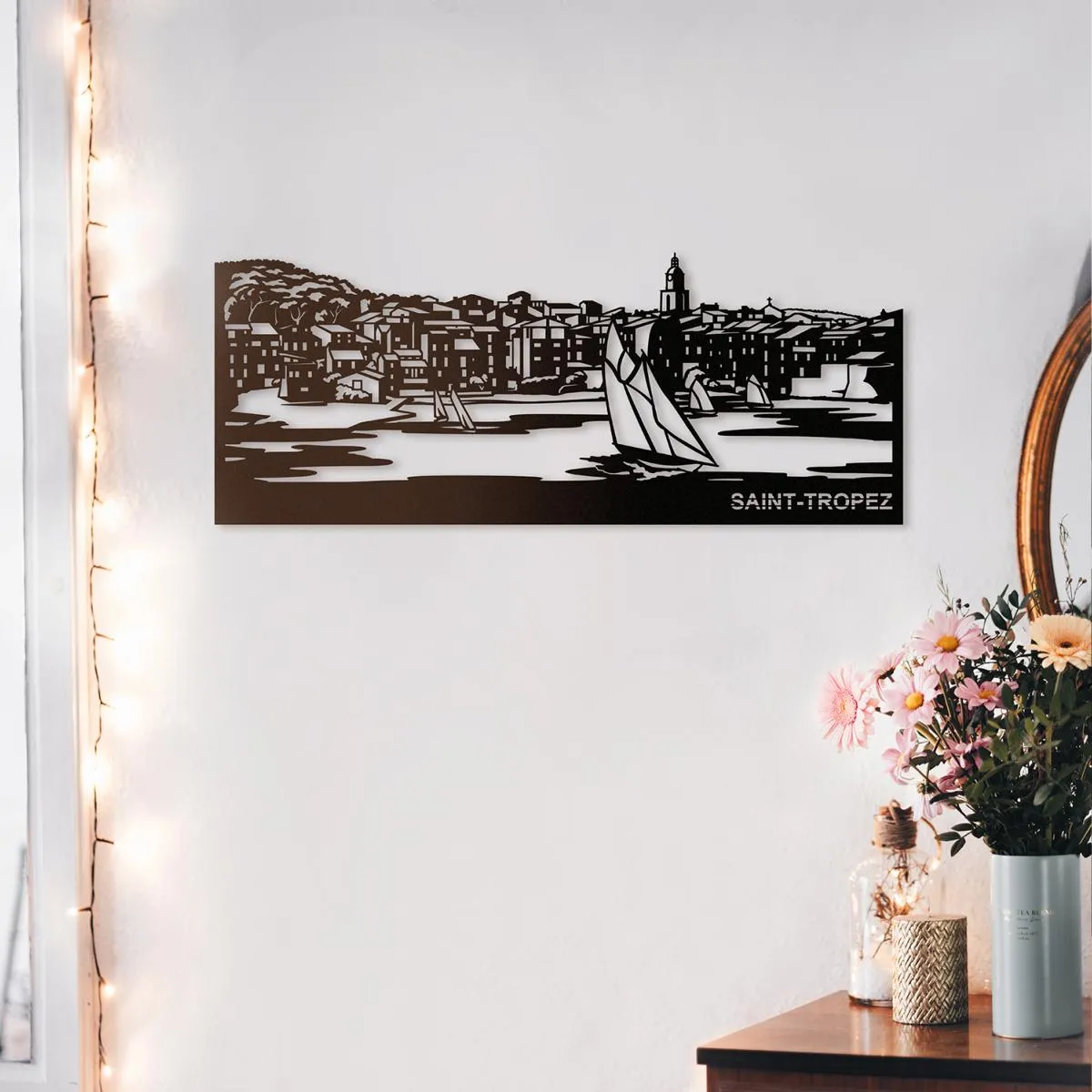Cette skyline de Saint-Tropez en métal découpé ajoutera à votre décoration intérieure une touche moderne et élégante.