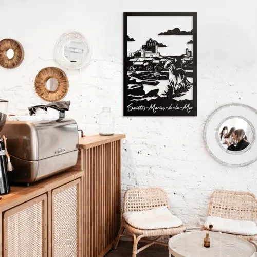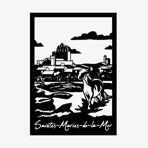 Plongez votre intérieur dans l’atmosphère envoûtante de la Camargue avec ce tableau mural en métal découpé représentant Saintes-Maries-de-la-Mer. Village emblématique du sud de la France, entre mer, marais et traditions gitanes, il séduit par son authenticité, son église fortifiée et ses paysages sauvages. Ce tableau finement découpé met en valeur la silhouette singulière de la ville dans un design épuré, moderne et élégant. Parfait pour apporter une touche de voyage, de culture et de liberté à votre décoration, il s’installe facilement et s’harmonise avec tous les styles d’intérieur. Offrez à vos murs un souffle de Méditerranée avec cette œuvre inspirée de Saintes-Maries-de-la-Mer, entre spiritualité, nature et traditions.