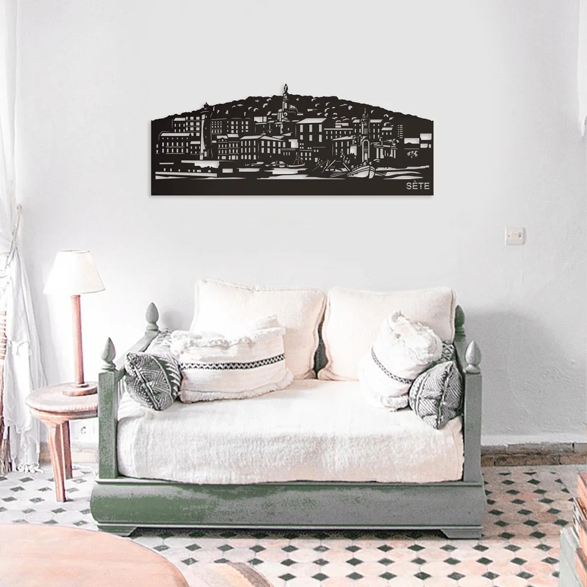 Cette skyline de Sète en métal découpé ajoutera à votre décoration intérieure une touche moderne et élégante.