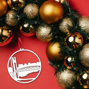 Avec son design finement découpé et son style moderne, cette boule de Noël symbolise le caractère unique de Strasbourg, entre cathédrale gothique, quartier de la Petite France et ambiance chaleureuse de Noël. Parfaite pour ajouter une note originale et authentique à votre sapin ou pour offrir un souvenir unique des fêtes au cœur de l’Alsace.