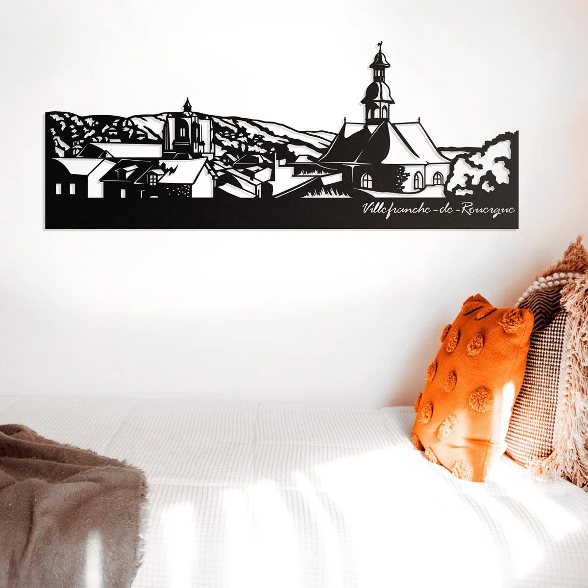 Cette skyline de Villefranche-de-Rouergue en métal découpé ajoutera à votre décoration intérieure une touche moderne et élégante.